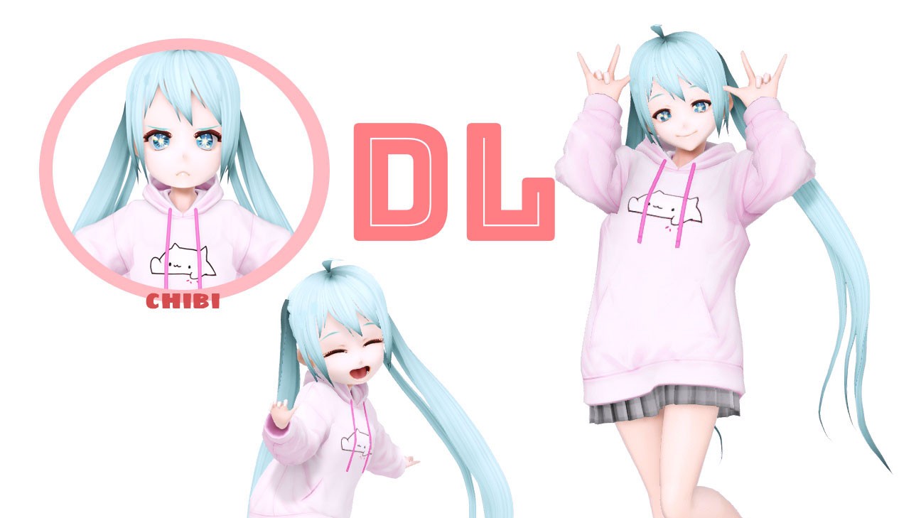 MMD资源库 » miku pink hoodie + chibi miku