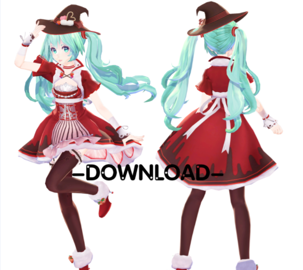 MMD资源库 » MMD模型草莓魔法师装扮初音模型下载