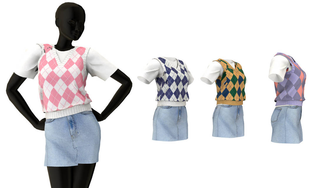 MMD资源库 » polo sweater vest denim skirt