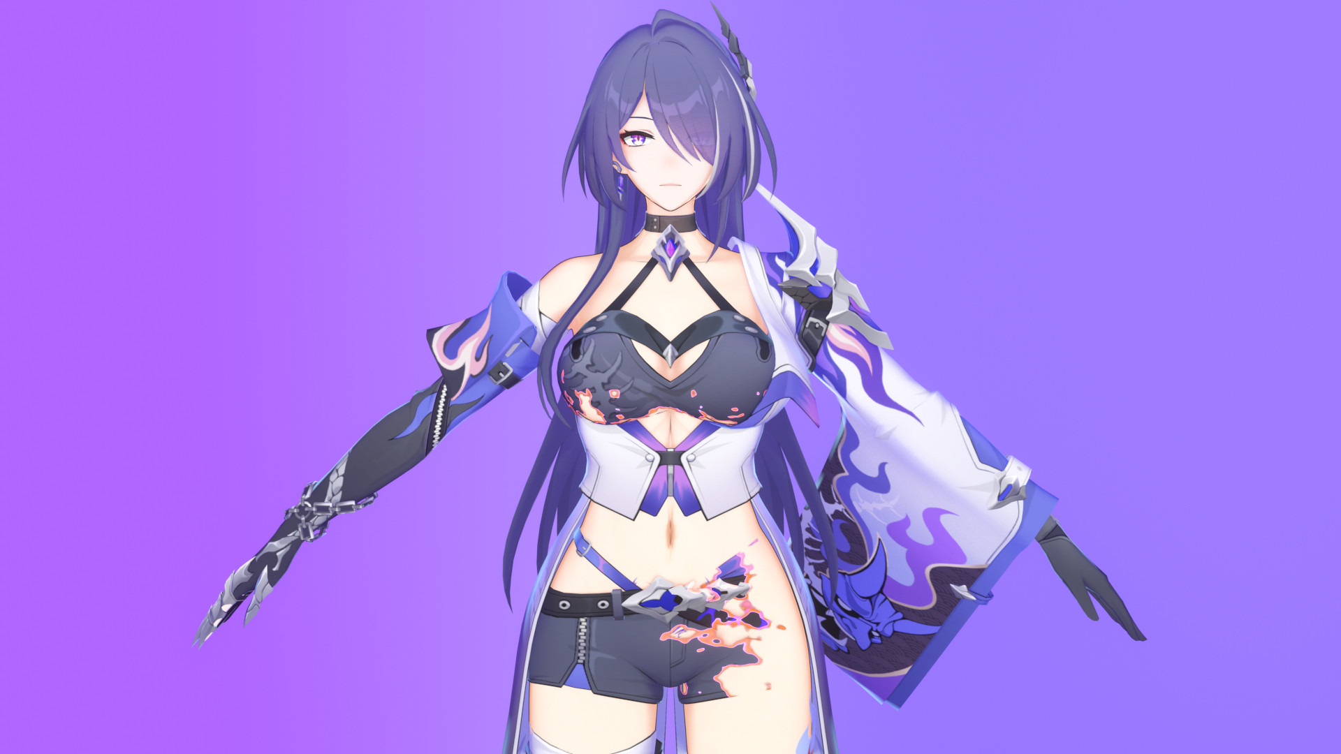 MMD资源库 » 【崩坏:星穹铁道】黄泉 三渲二预设 衣服灼烧效果