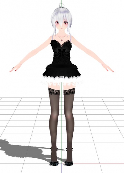 MMD资源库 » MMD模型下载 黑丝吊带弱音 模型下载